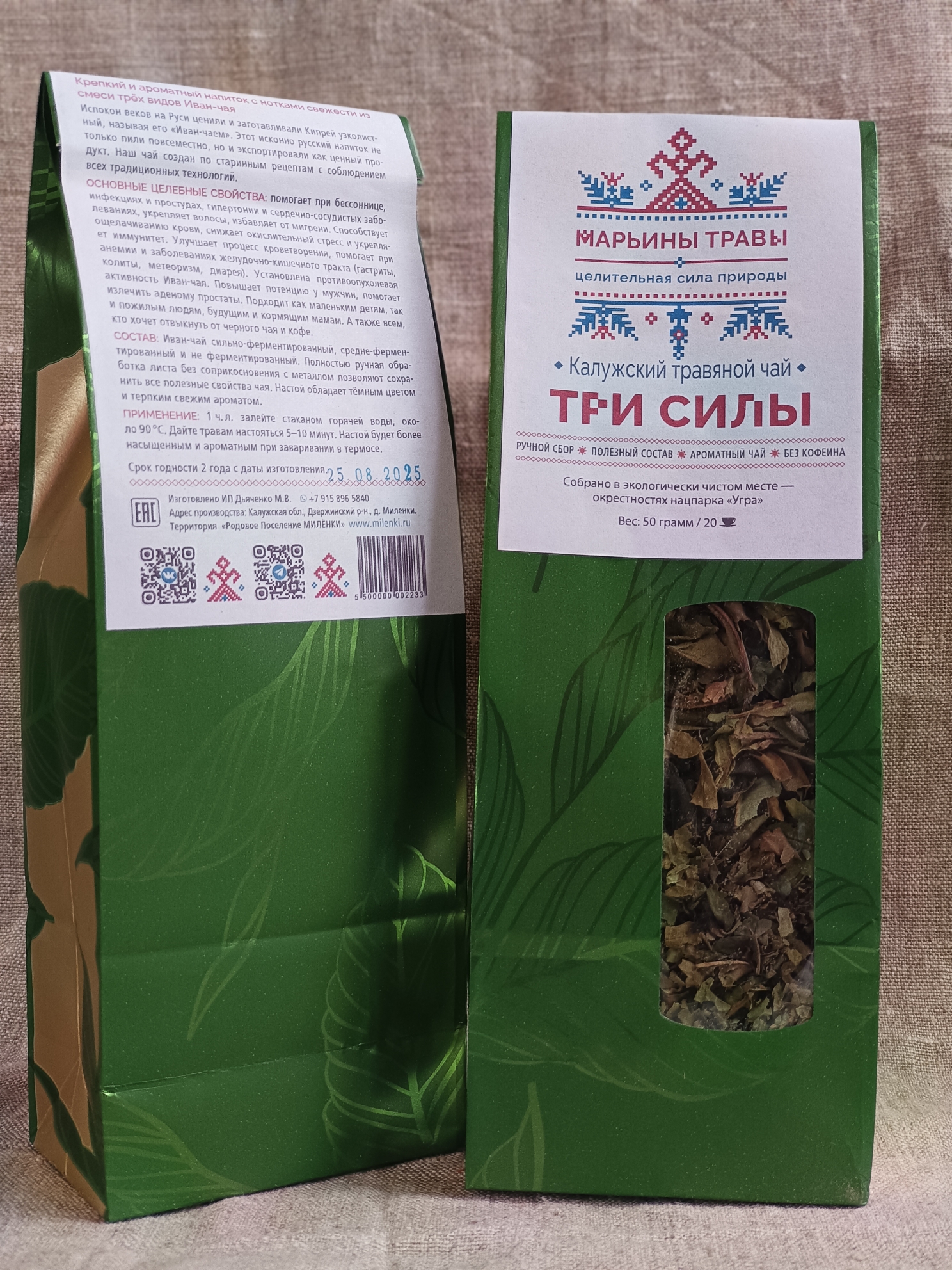 СОСТАВ: Иван-чай сильно-ферментированный, средне-ферментированный и не ферментированный. Полностью ручная обработка листа без соприкосновения с металлом позволяют сохранить все полезные свойства чая. Настой обладает тёмным цветом и терпким свежим ароматом.